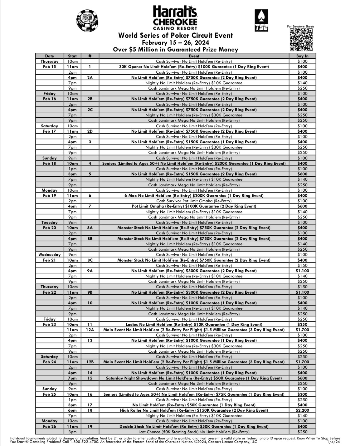 “WORLD SERIES OF POKER and associated logos and designs are trademarks and service marks of Caesars Interactive Entertainment, LLC. Main Event Travel is not affiliated in any way with Caesars Interactive Entertainment, LLC or the World Series of Poker.”