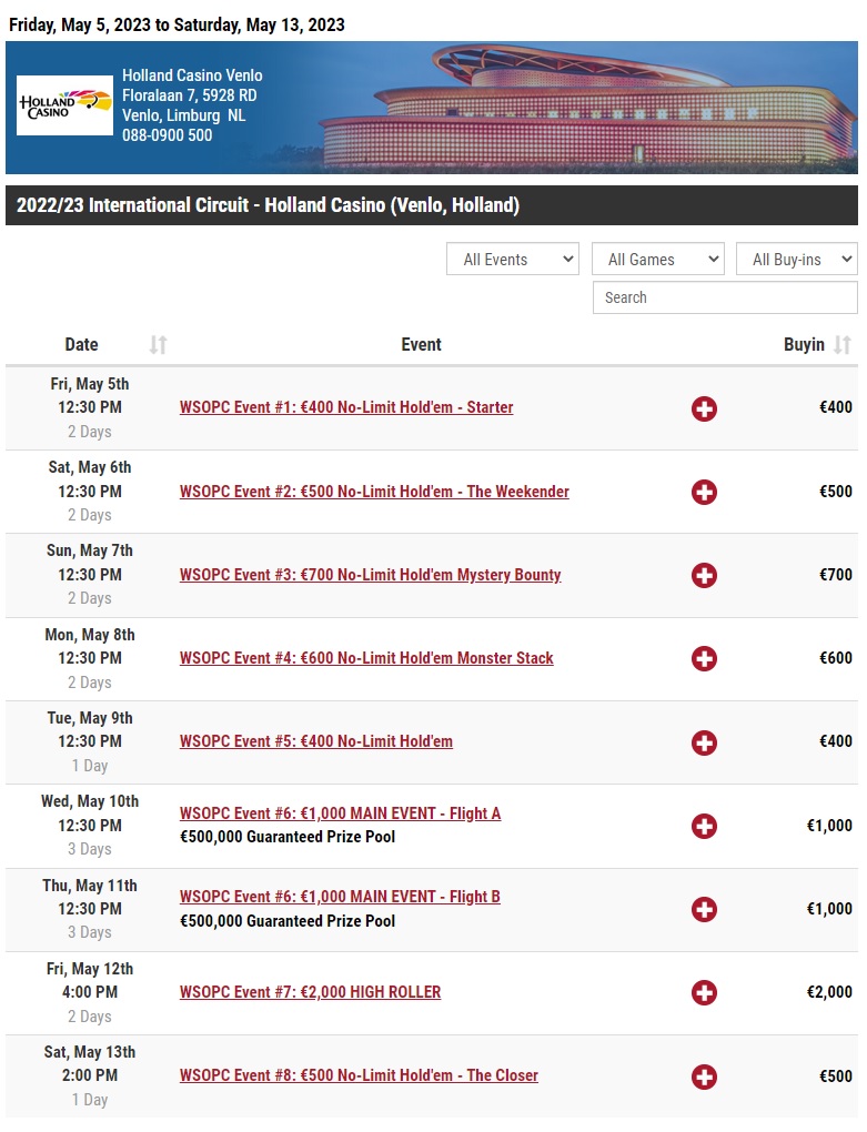 AND `url` = 'https://www.maineventtravel.com/event/-holland-casino-2023'