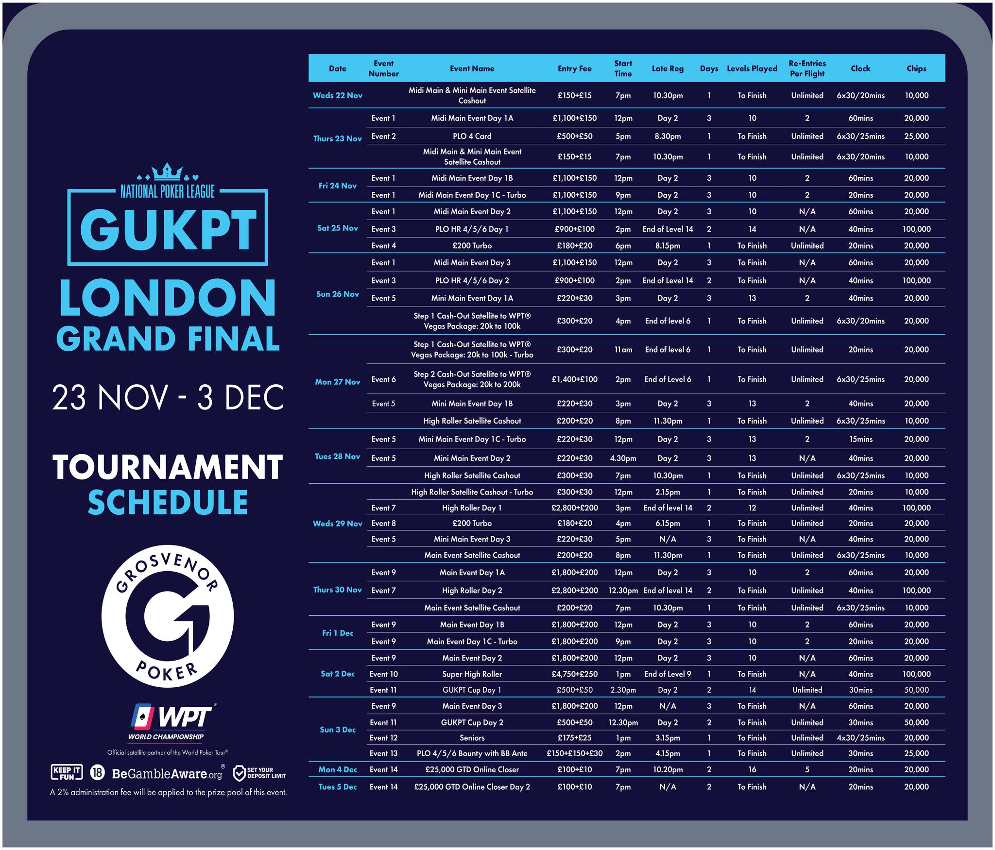 2023 closes with the much anticipated Grand Final featuring an £1800 + £200 Main Event