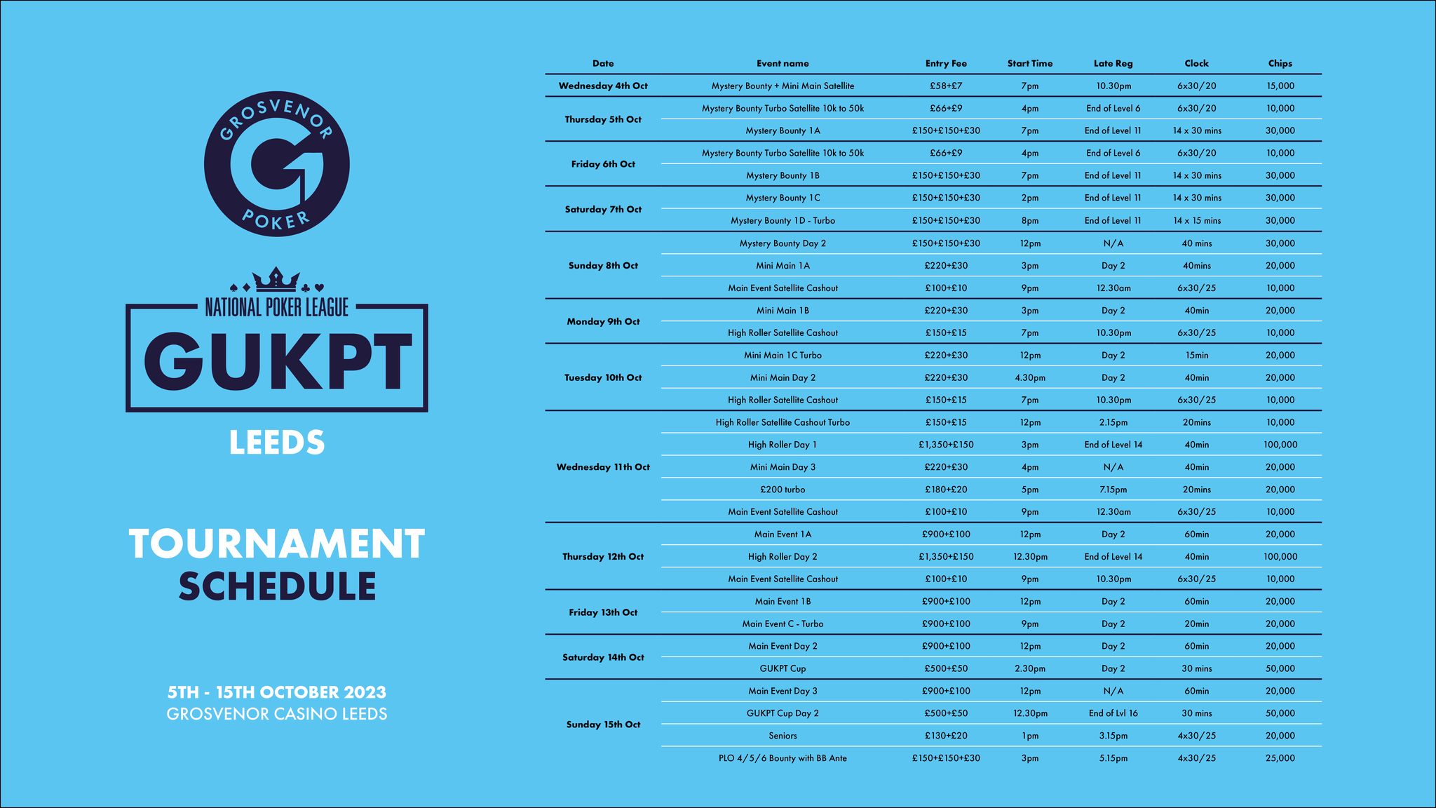 GUKPT Leeds features a £900 + £100 Main Event