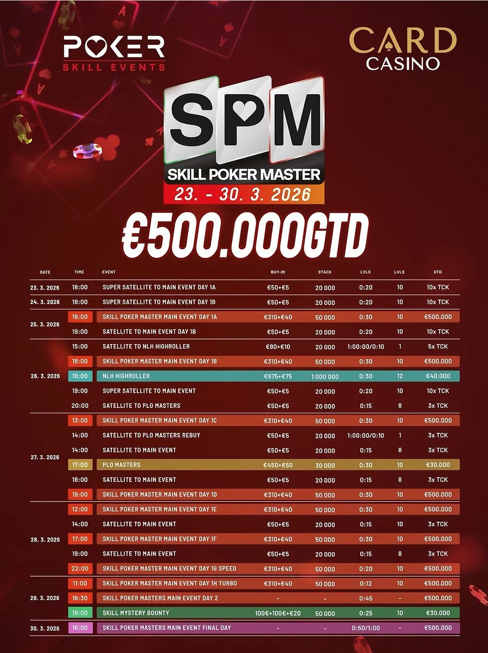 Main Event Buy-In: €310+€40 with €500,000 GTD.