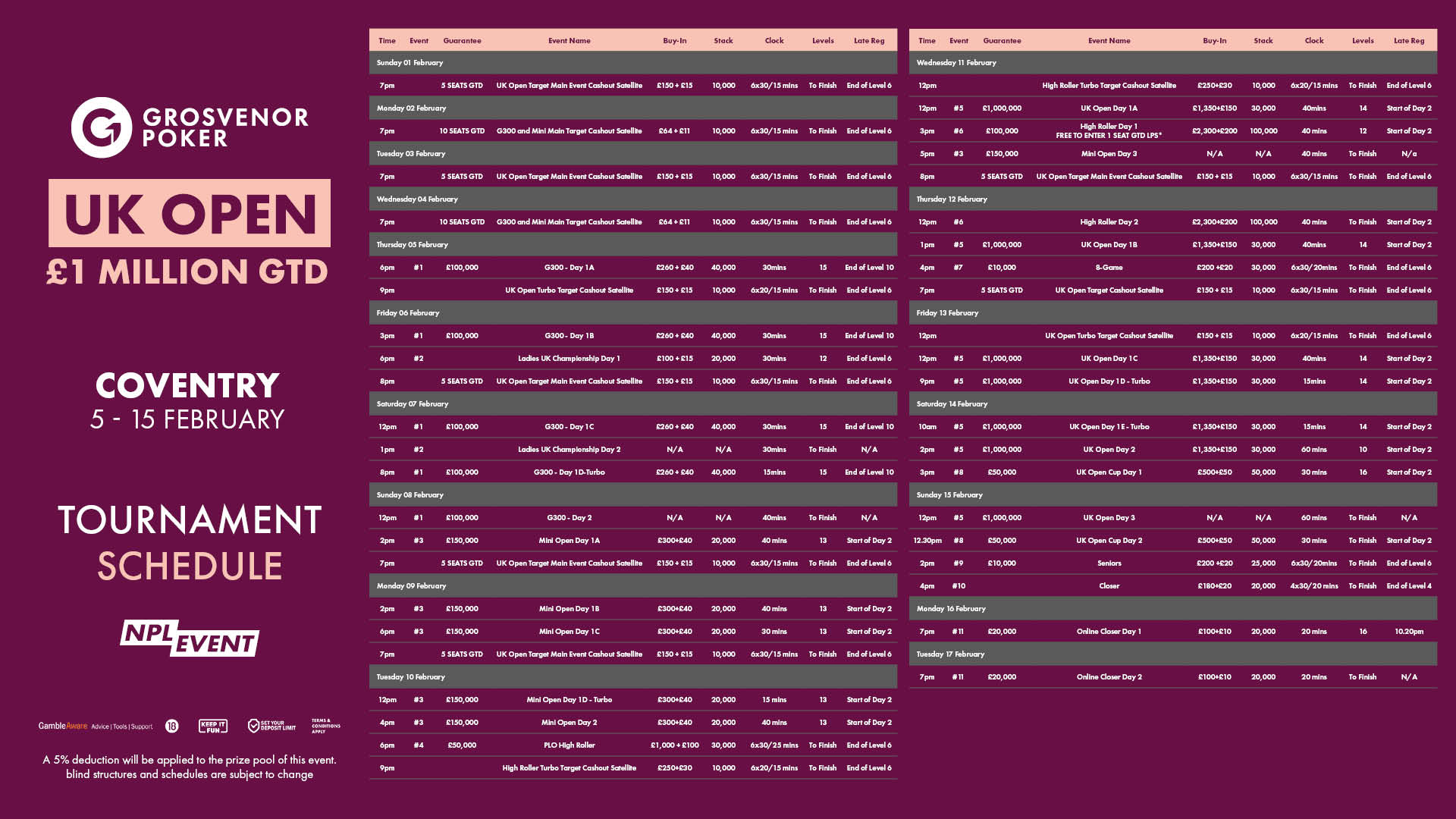 Main Event Buy-in: £1350+£150 with a prize pool of £1,000,000 GTD.