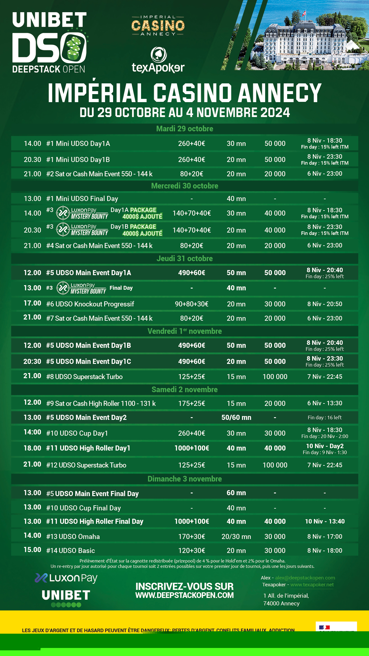 The Imperial Casino of Annecy hosts the annual UDSO poker festival! The 2024 edition is already shaping up to be memorable with new surprises for players and the incredible welcome that the Casino has in store for players!