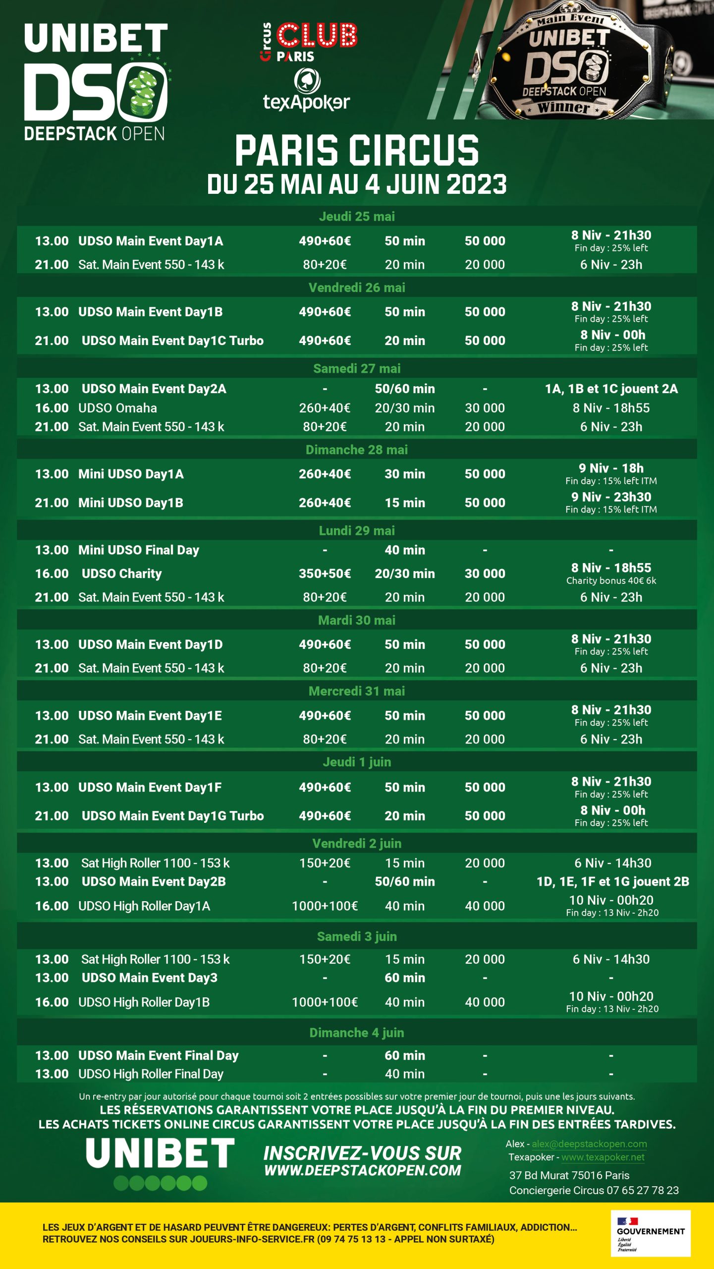 The historical parisian stage is waiting in the Club Circus, once again all records will be beaten with a golden prize pool : over €60.000 for the winner in average on the UDSO events in Club Circus.