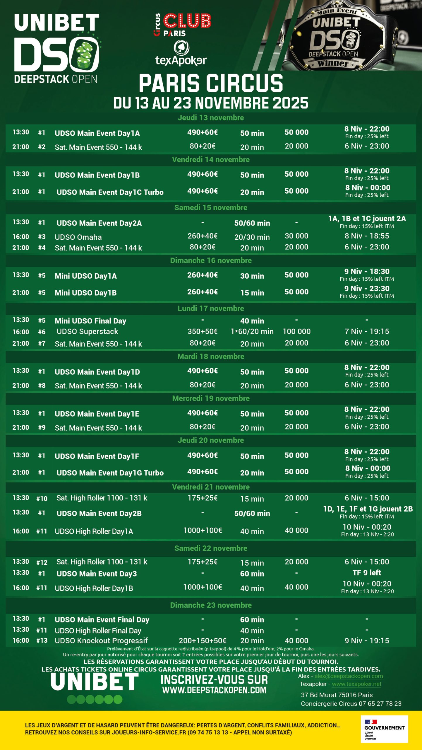 FromNovember 14th to 23rd, 2025, the Unibet DeepStack Open will deal its cards inFrance’s capital, where poker will blend with Parisian glamour.