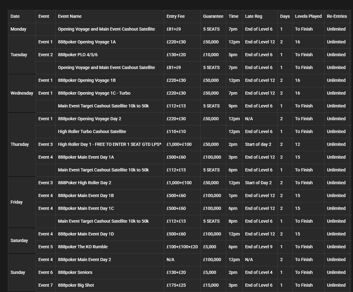 Main Event Buy-In: £500+£60 with a guarantee of £100,000.