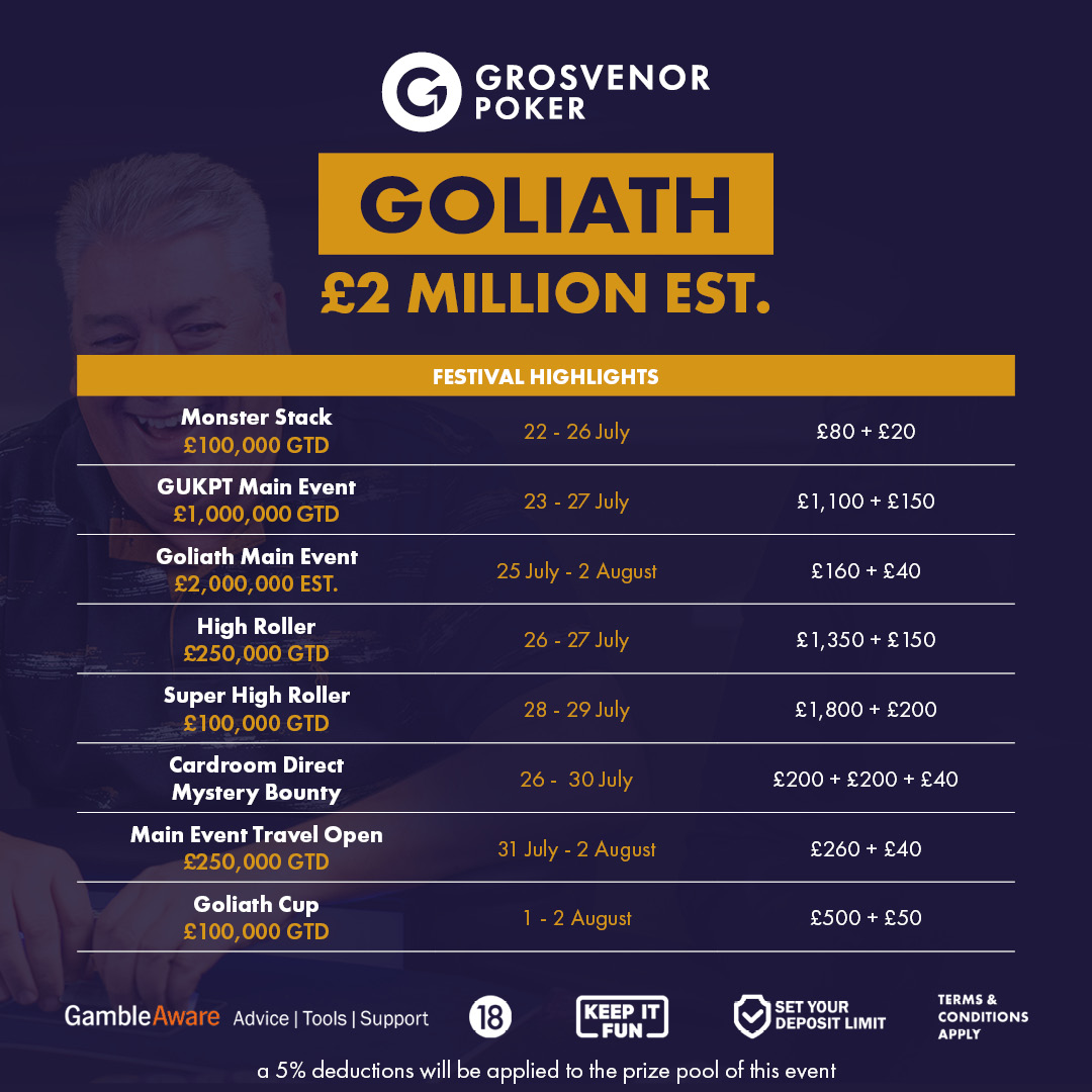 Grosvenor Goliath is the largest live poker tournament held outside of Las Vegas.
