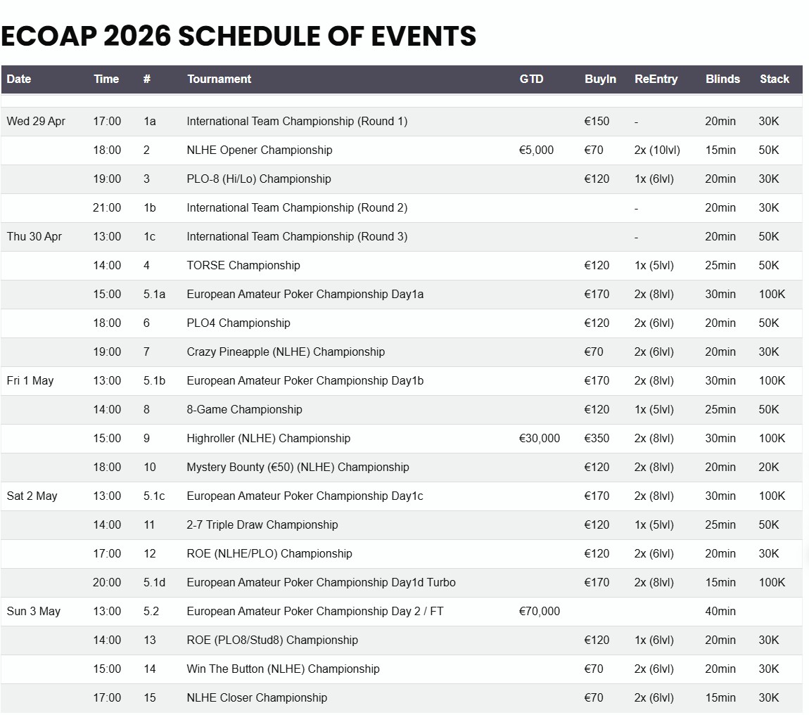 Main Event Buy-In: €170.