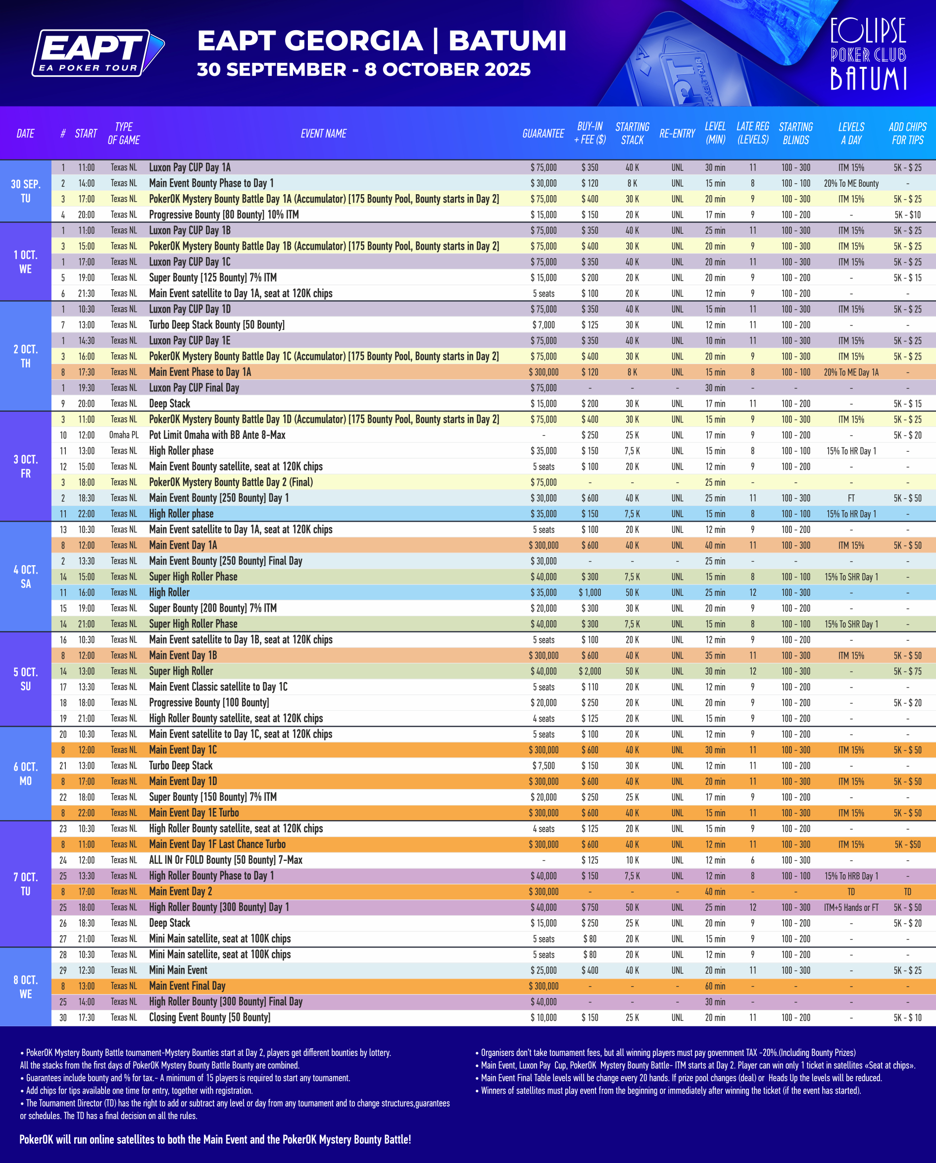 EAPT Georgia Main Event is a $600 buy-in event with the biggest guarantee of the series at $300,000.