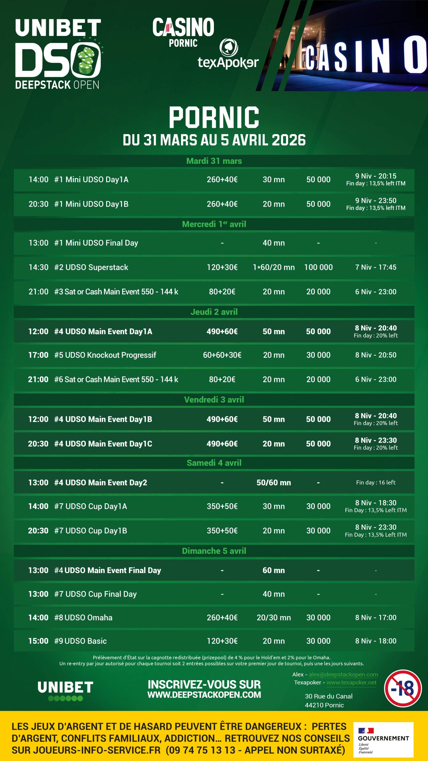 Players will enjoy the signature UDSO structure, a welcoming atmosphere, and a festival designed for both amateurs and seasoned competitors. With multiple side events, cash games, and qualifiers available online on Unibet, this stop promises to be one of the highlights of the season.