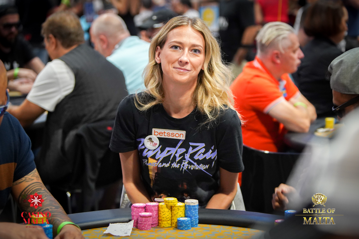 There are currently 77 entries in the €1,300 Battle of Malta High Roller including Andrew Christoforou, Peter Jaksland, Jimmy Kebe, Antoine Labat, and Jamila von Perger.
