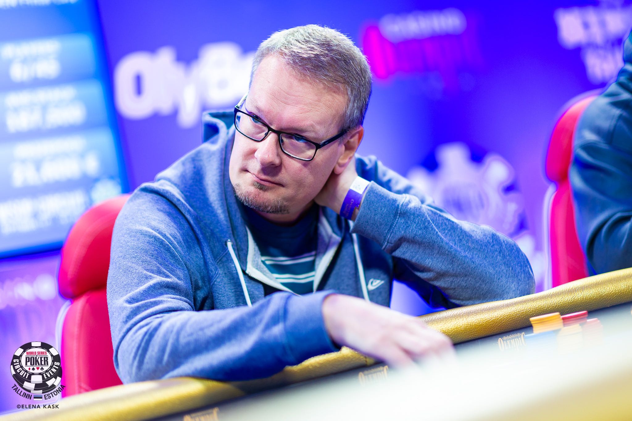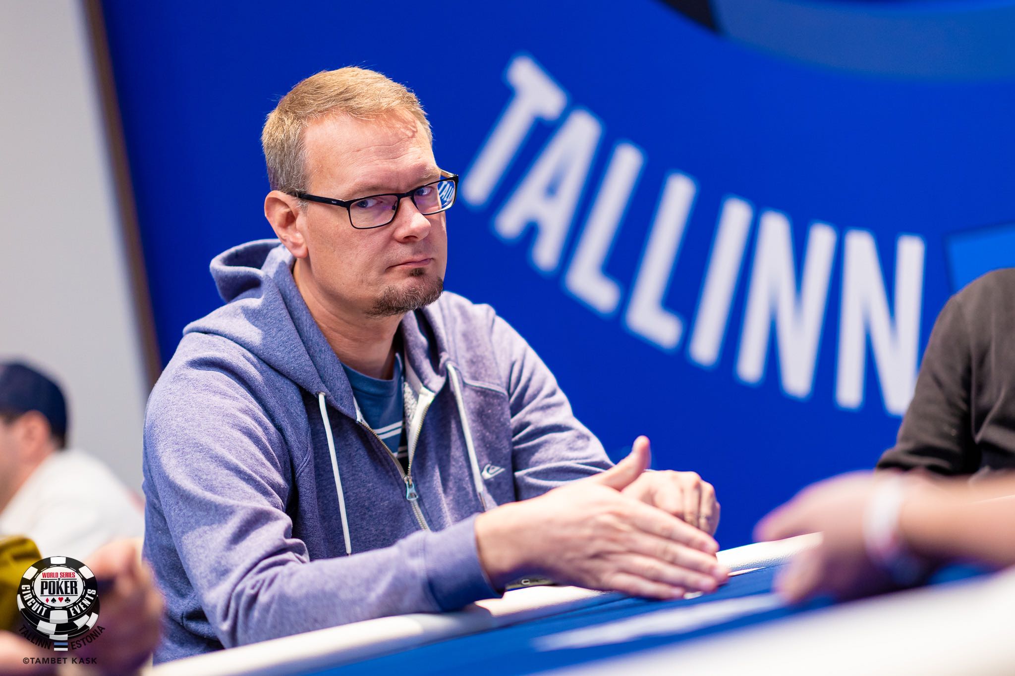 Uruguay's Martin Lategui (pictured below) enters the final table in second place with 294,000, while Estonia has a shot at winning its second title on home soil with Aleksandr Arutjunov in the middle of the pack with 149,000.