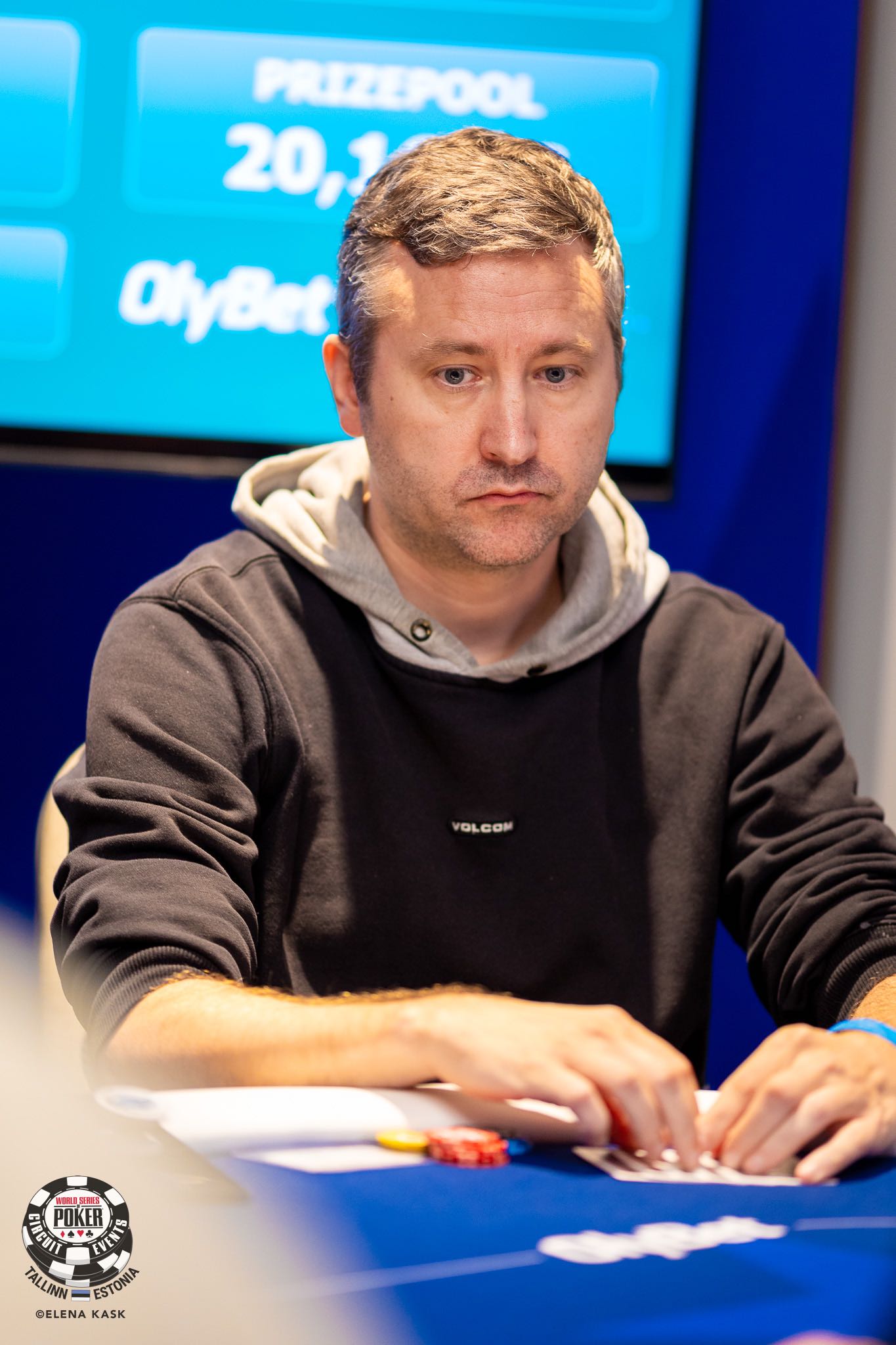 This was really the day of Jon Kyte from start to finish at the final table even if it would take a little over 16 hours from start to finish and three hours on the final table only. After eliminating Janne Peltoniemi in fourth place (€11,800), and Jari Petteri Kalenius in third (€15,950) he was in the lead as we reached heads-up between Kyte and Olli Rummukainen. This was the first time at the final table that Kyte actually would give away his lead but that only lasted one hand before he took it back and the hand after that it was all over and he had eliminated yet another Finn earning himself that WSOP Circuit golden ring here in event #8 here in Tallinn.